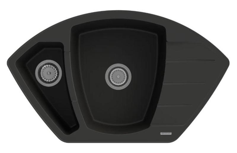 Graniteland Monte Granit fekete Sarokmosogató felületre szerelhető 901x538mm rozsdamentes acél dugóval 1208971413